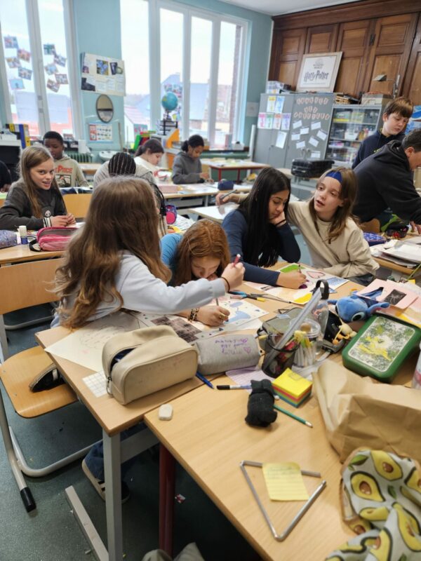 En collaboration avec le centre culturel de Lessines, nos élèves de P5/6 ont participé à un projet PECA qui leur a permis de travailler avec une artiste après avoir visité l’Hôpital Notre-Dame à la Rose. Découvertes, créations, connaissances, échanges étaient au menu de ce projet.